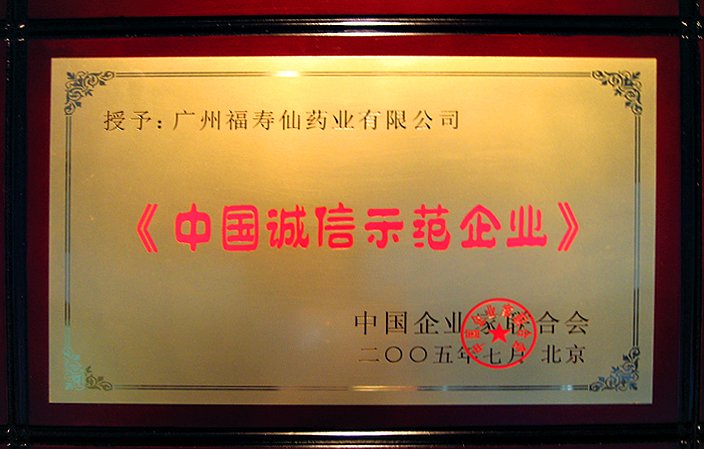 2005年福壽仙企業(yè)榮獲中國(guó)誠(chéng)信示范企業(yè)稱號(hào)