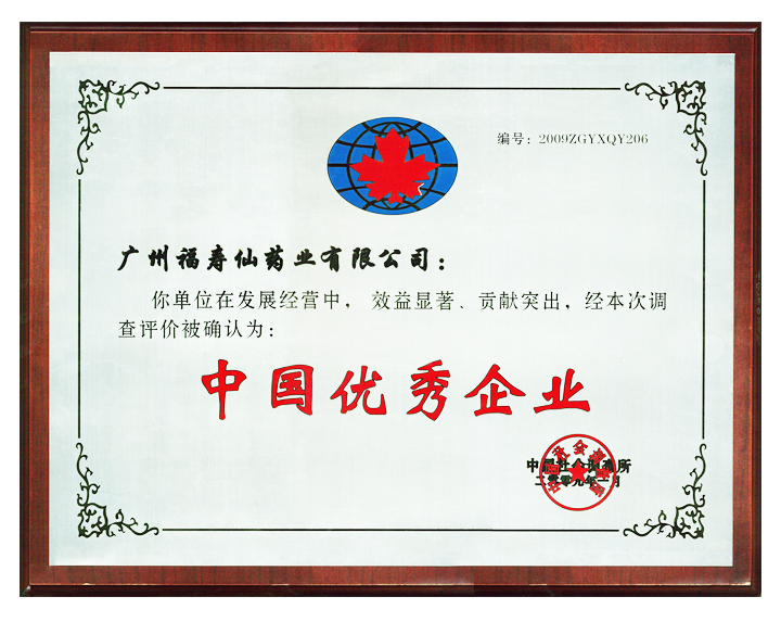 2009年福壽仙企業(yè)被評為“中國優(yōu)秀企業(yè)”